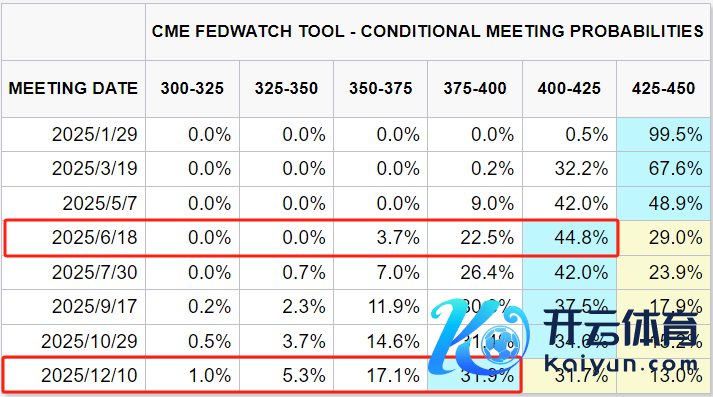 据芝商所“好意思联储不雅察”,限度发稿,现在期货阛阓觉得好意思联储FOMC(联邦公开阛阓委员会)将差异在6月和12月各进行一次25个基点的降息,年底时联邦基金利率将达到3.75%~4.00%的水平。
