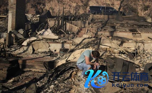 在加利福尼亚州洛杉矶的帕利塞兹,一场山火激发往时悼念。1月11日,又名须眉缄默蹲在自家已成焦炭的废地上,满心凄怨,灾荒难当。