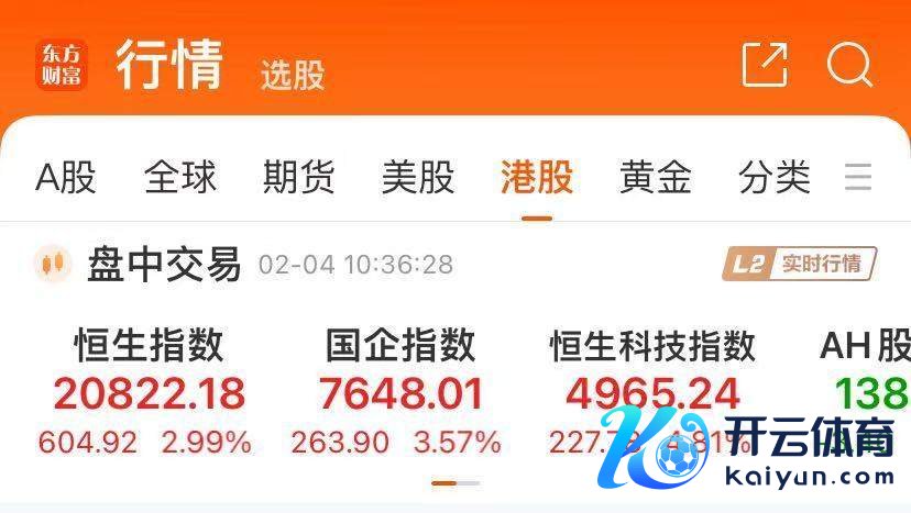 周二港股大幅高开后接续飙升,恒指现涨2.99%,恒生科技指数涨4.81%。