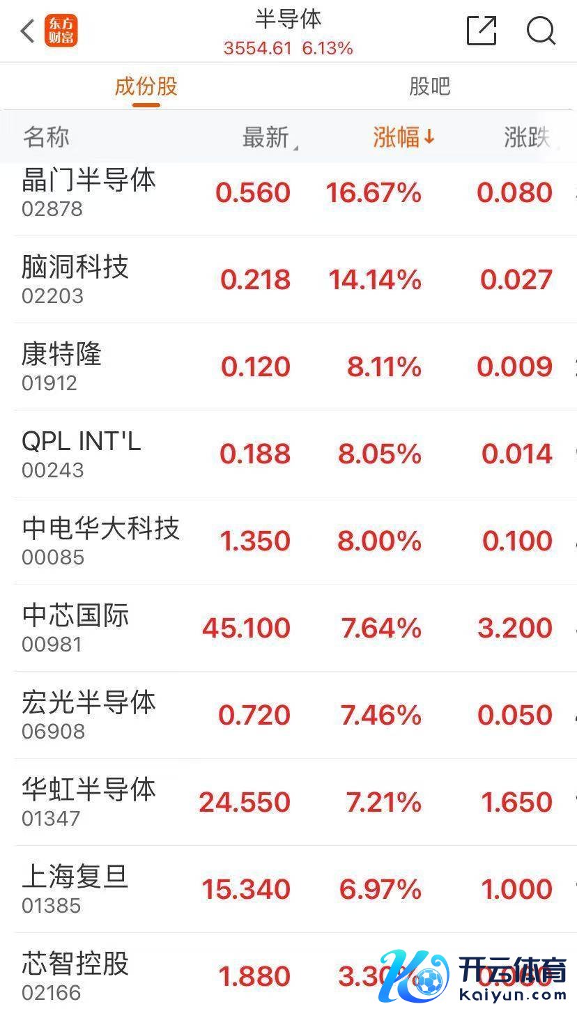 中芯海外港股涨超7%,股价冲破2020年7月高点,创历史新高。半导体板块全线大涨,晶门半导体涨超16%,脑洞科技涨超14%,华虹半导体、上海复旦涨7%。