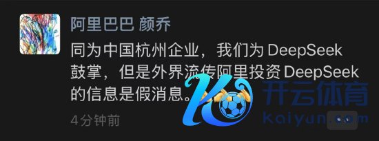 对此音尘,阿里巴巴集团副总裁颜乔在一又友圈回答称,“同为中国杭州企业,咱们为DeepSeek饱读掌,然则外界流传阿里投资DeepSeek的信息是假音尘。”